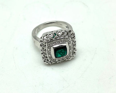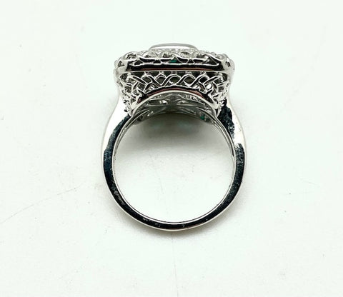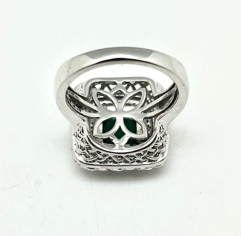Stunning Emerald & Diamond Ring in Sterling Silver