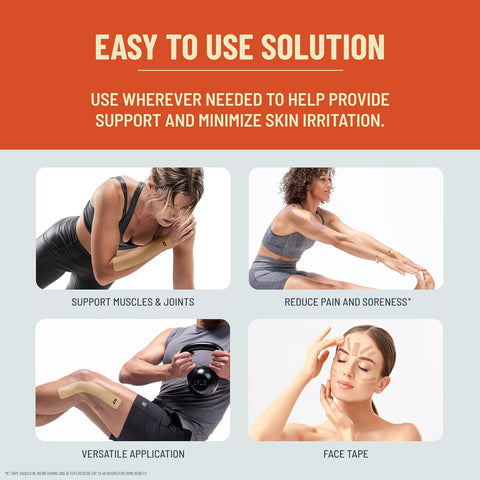 KT Tape, Kinesiology Athletic Tape, Gentle Adhesive for Sensitive Skin, 20 Count, 10" Precut Strips, Beige